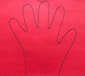 Step 1: Trace your hand and cut it out. This will be the body of the hermit crab.